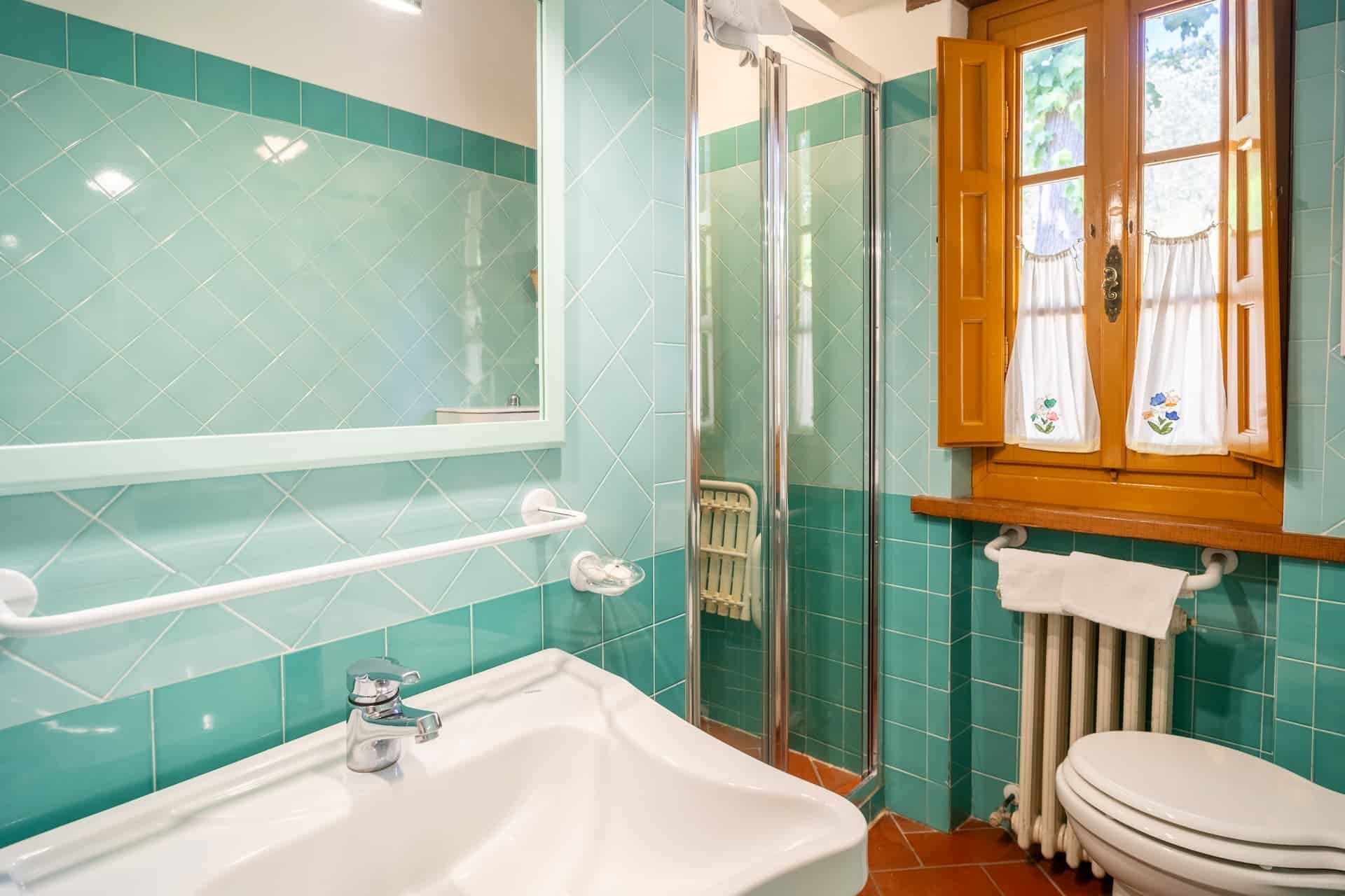 Downstairs bathroom: Green tiles make the nice atmosphere of this bathroom. It is also fully equipped for the disabled.